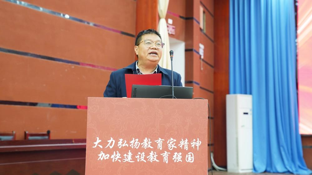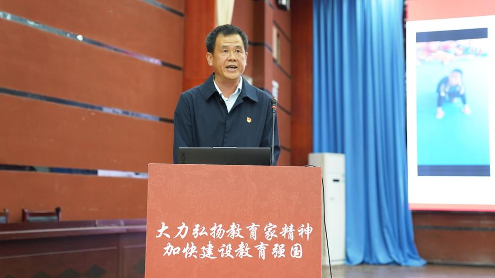 “教育底蕴浓厚,尊师氛围浓郁!”湄潭县教育体育局党委书记、局长王进世在致辞时说,抗战时期,浙江大学西迁湄潭办学七年,竺可桢、苏步青、李政道等54位两院院士在此潜心科研教学,积累了深厚的文化底蕴。近年来,湄潭县委、县政府累计表扬先进集体30个、优秀个人906个,尊师重教逐渐蔚然成风。希望各学校将教育家精神转化为办学治校的生动实践,深化课程改革、优化评价体系,落实立德树人根本任务。希望广大教师以此次宣讲活动为契机,从教育家的思想与事迹中汲取力量,以“四有好老师”的标准严格要求自己,躬耕教坛潜心教书育人,当好学生成长的引路人。